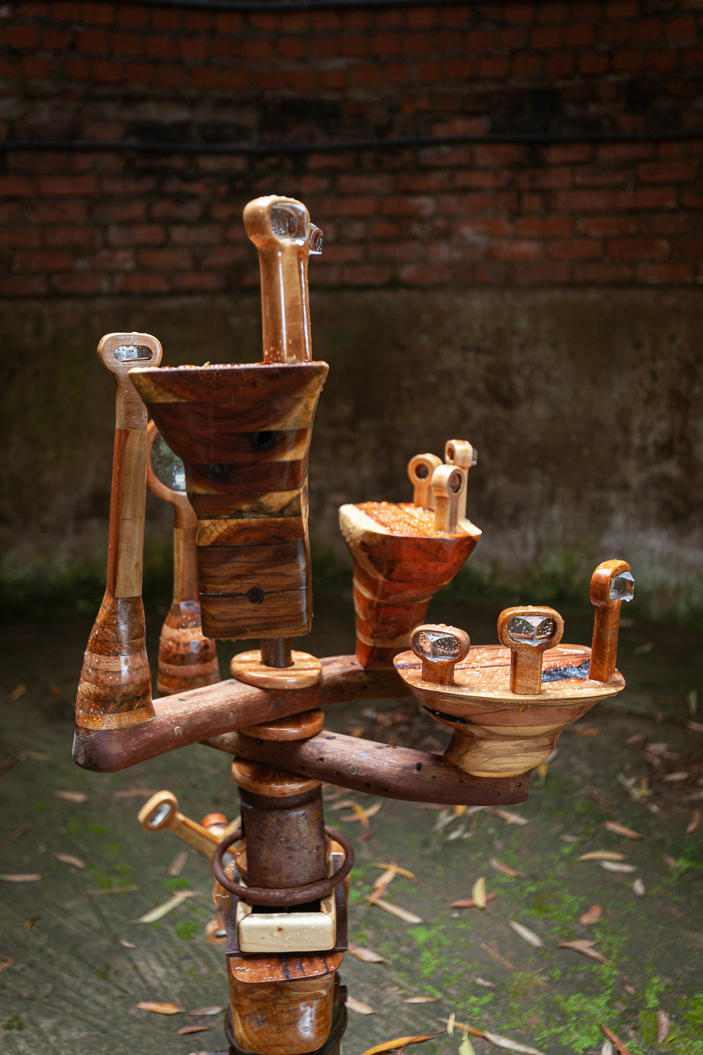 Endless Possibilities is a sculpture that has been one year in the making. Over time, Reishi and Turkey Tail mushrooms will emerge from the structure at their own pace.
